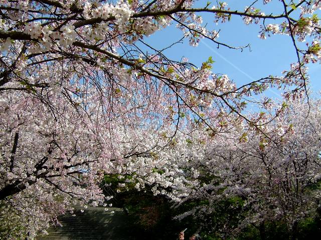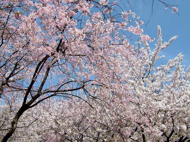 この公園には、いろいろな説がありはっきりとした数字を示すことは出来ませんが、およそ1,400本〜3,200本の桜の樹があり、