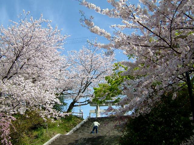 西公園の中心となる光雲神社の階段の下の広場には、撮影者がいっぱい!